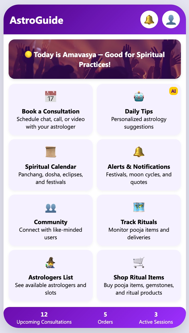 Personalized astrology mobile app providing daily horoscopes, zodiac insights, and AI-based compatibility analysis.